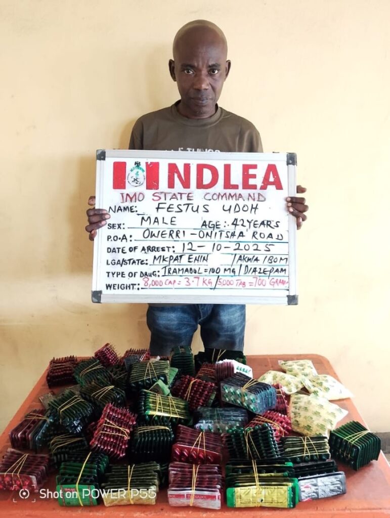 In Adamawa State, Bello Buba was caught at an NDLEA checkpoint in Yola South with 38,270 tramadol tablets hidden inside the spare tyre, boot, and door compartments of his vehicle. The drugs were traced to Benin Republic.